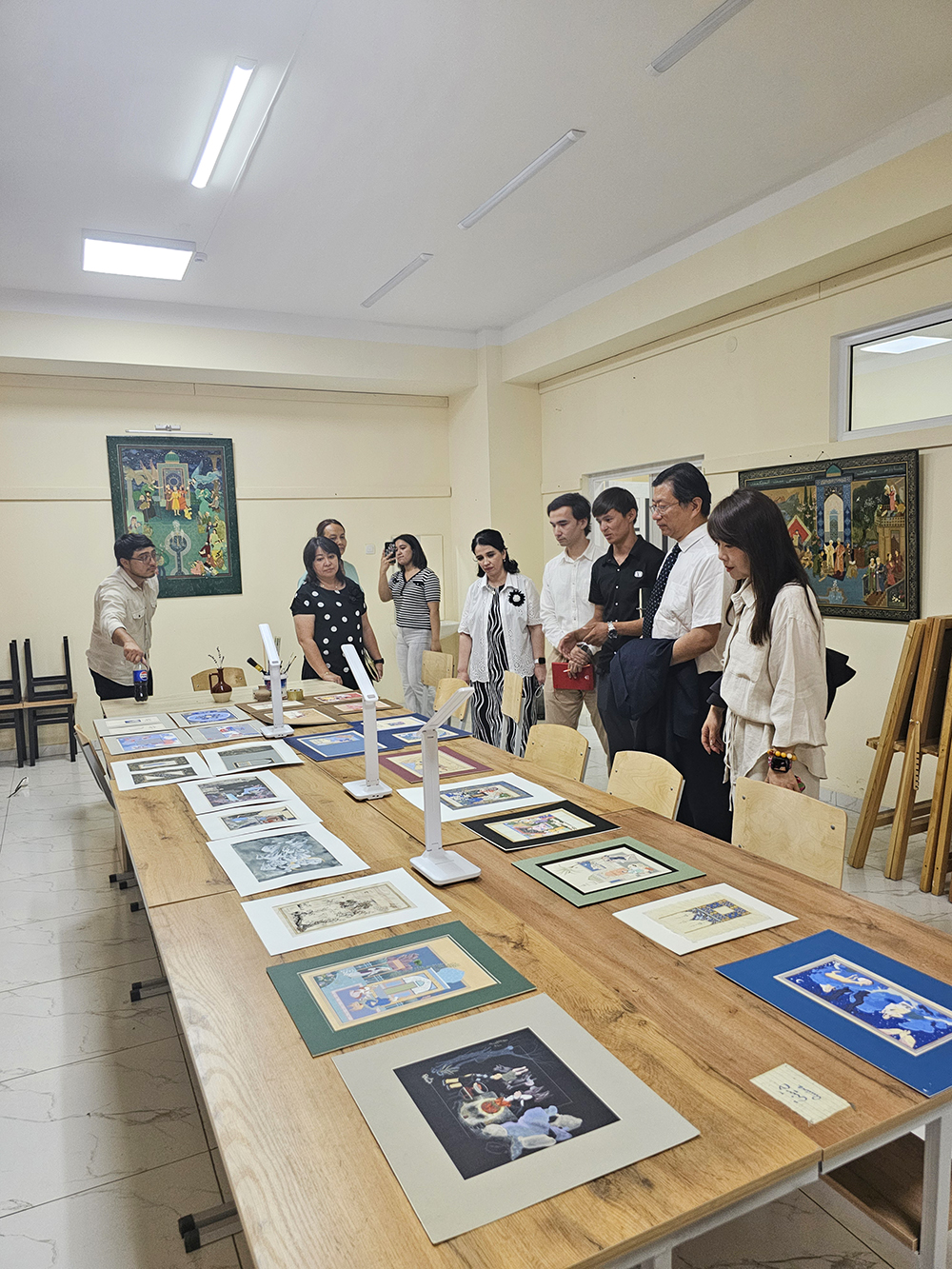 在全球化的大背景下,我校积极响应国家对外开放政策,贯彻职业教育“走出去”战略,致力于推动工艺美术和艺术设计类职业教育国际化与数智化的普及与发展。我校依托自身在传统工艺美术领域中所建立的教学科研优势,借助“全国数智艺术与设计创意行业产教融合共同体”的平台优势,开展学术交流与专业指导,应乌兹别克斯坦民族美术与设计学院和哈萨克大学邀请,我校校长张广军率领代表团于6月22日至6月29日赴乌兹别克斯坦与哈萨克斯坦进行了为期一周的交流访问。学校教务处处长任慧,国际合作科副科长王东随团出访。