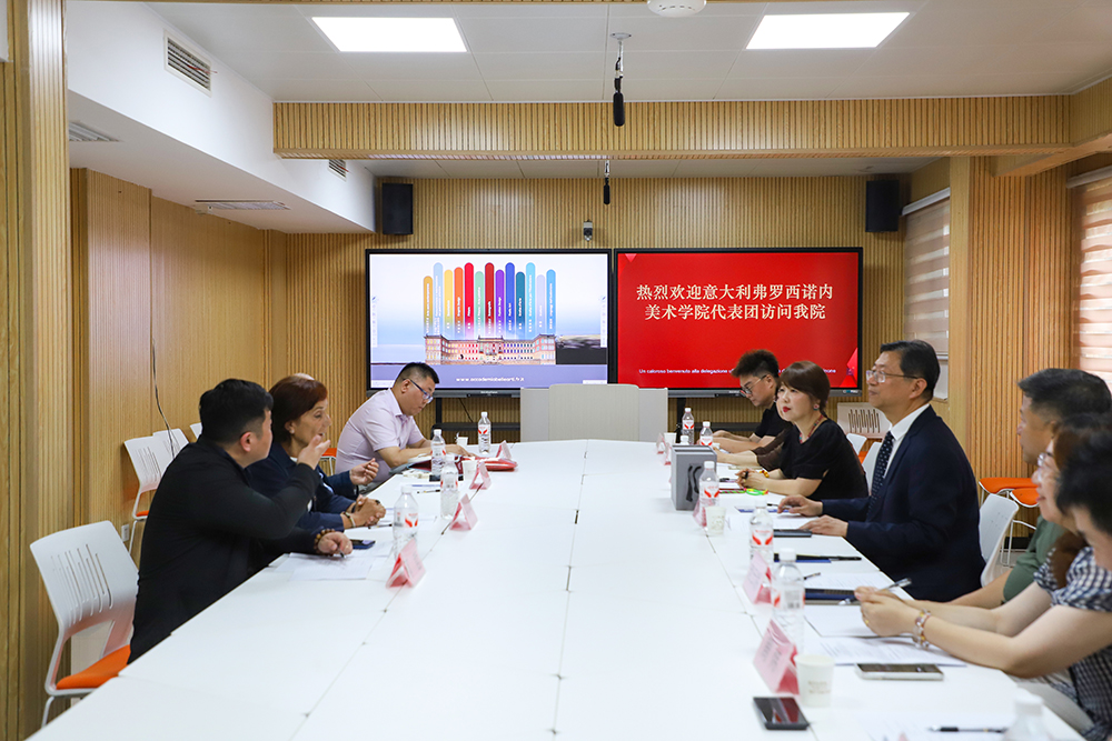 6月30日,意大利弗罗西诺内美术学院校长Stefania di Marco(斯特凡尼亚·迪·马尔科)教授、国际部负责人Mauro Walter Pagnanelli(毛罗·沃尔特·帕尼亚内利)教授等一行四人到访我校鹿泉艺术实践中心,学校校长张广军、党委副书记赵云耕接待来访客人,对外交流合作中心、视觉传达设计系、鹿泉艺术实践中心等相关部门负责人陪同。