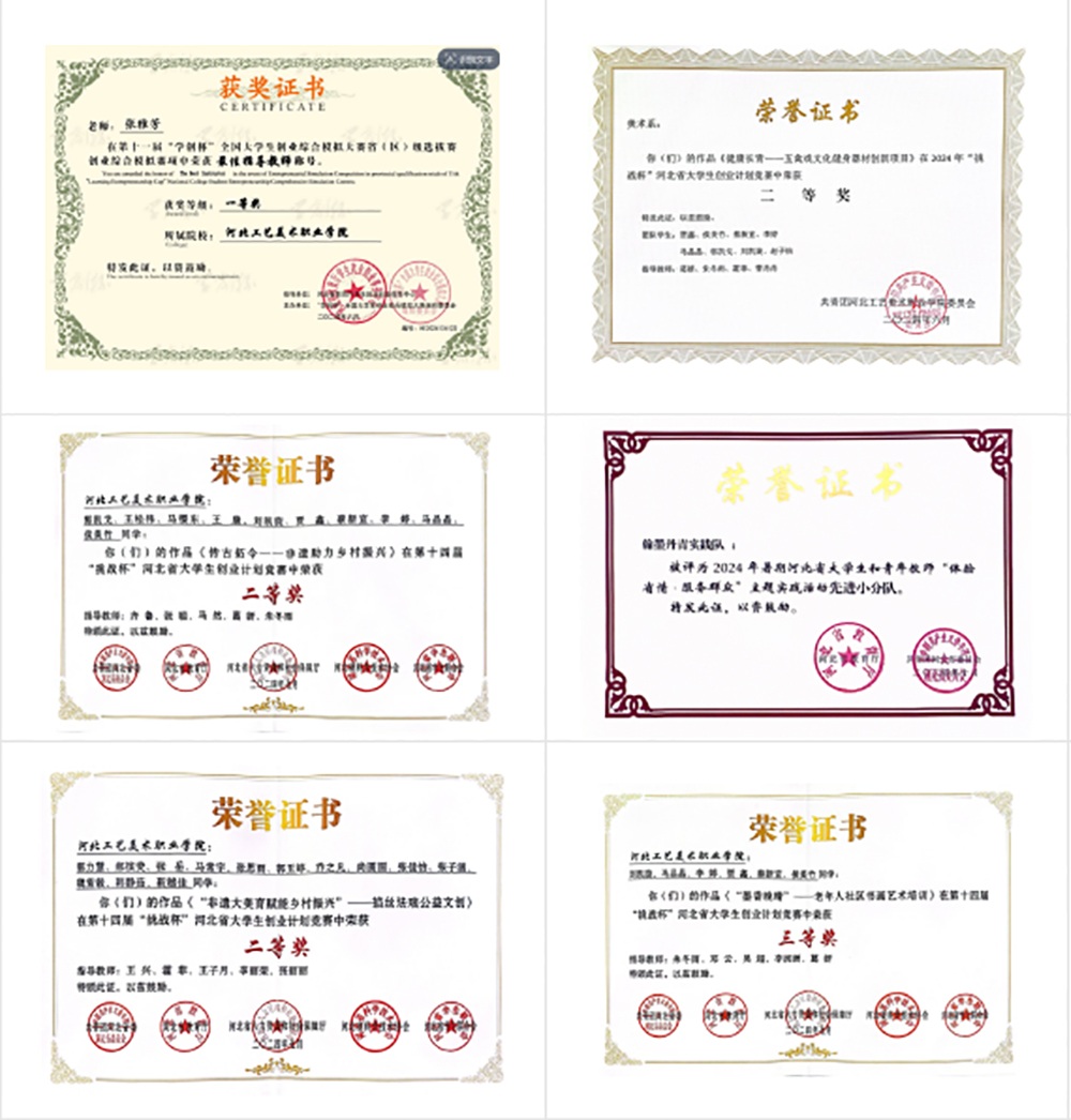 通过上述实践,支部成功实现了“促文化自信、促思想提升、促责任担当、促品牌影响”的建设目标,师生也荣获全国学创杯一等奖、河北省“挑战杯”二等奖等多项荣誉。