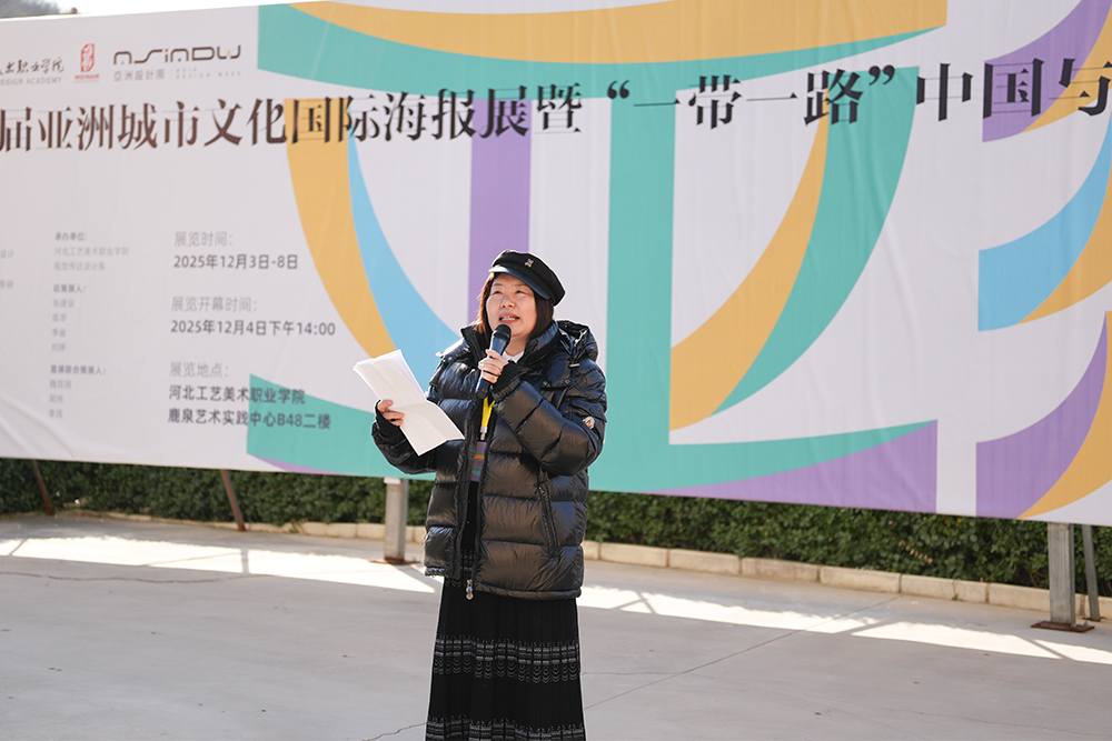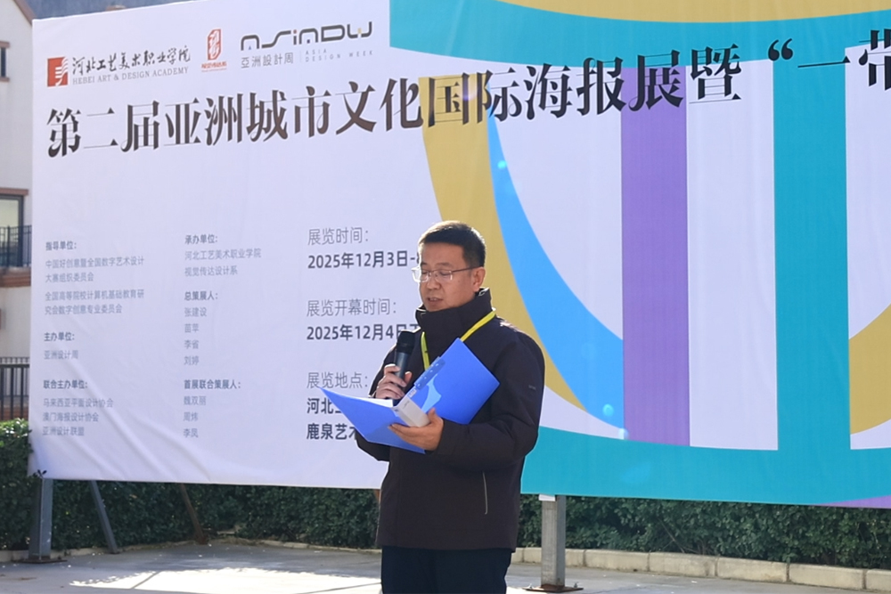 亚洲城市文化国际海报展首席策划兼首席策展人、鲁迅美术学院苗苹博士阐述了通过海报艺术挖掘城市文脉、促进区域对话的策展初衷,呼吁共同以数字艺术赋能“一带一路”文化合作。石家庄学院赵建教授在发言中表示,在数字时代,设计肩负着沟通文化的使命,数字技术为文明交流提供了新的纽带。