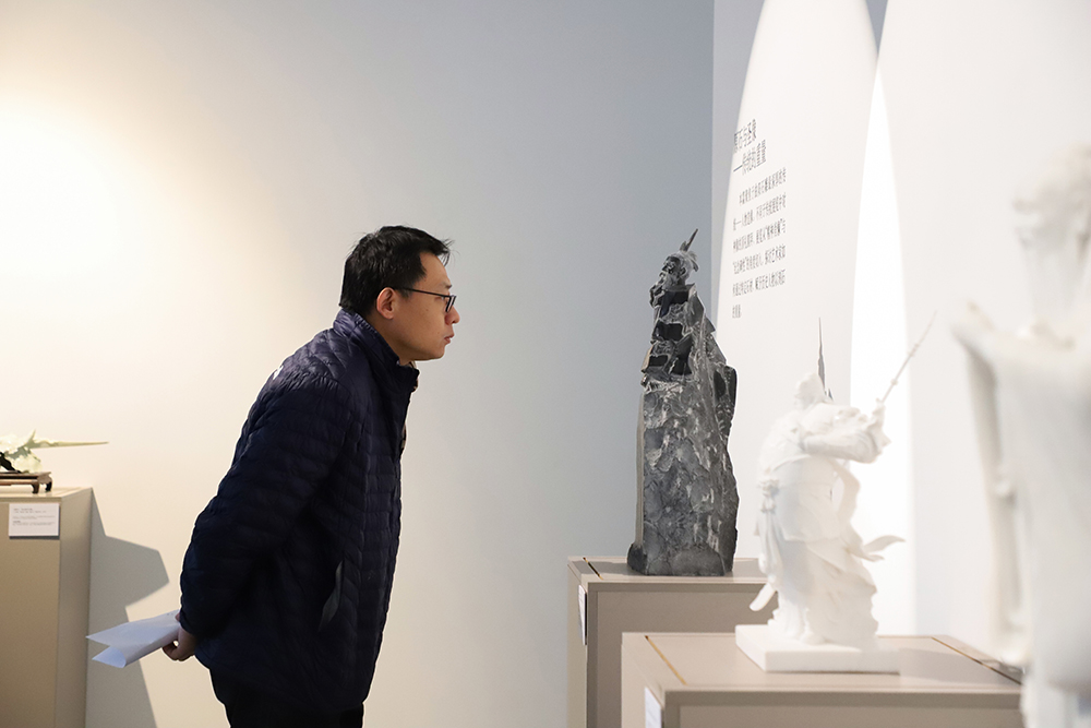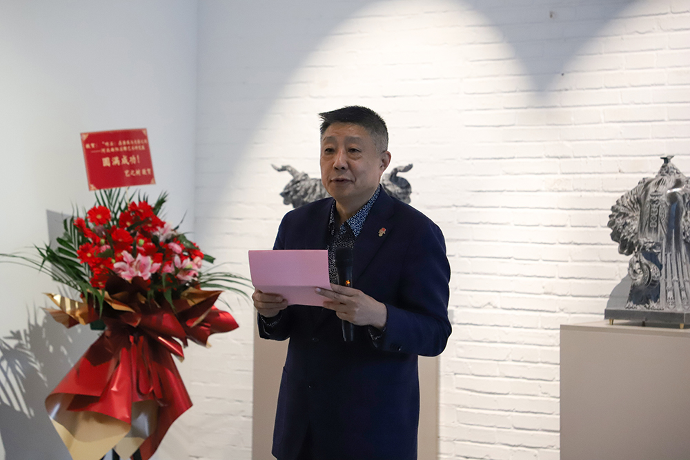 才大颖对展览成功举办表示祝贺,并表示,这不仅是回归艺术本体的深刻觉醒,更是“产教融合”与“学术引领”的成功实践,为行业转型升级提供了示范。王谞昭在致辞中谈道,此次展览不仅是技艺的展示,更是传统文化与当代审美的深度融合,希望能以此为契机,让更多人关注并重新认识曲阳石雕艺术。高英坡作为参展艺术家代表发言,他分享了在石雕创作中守正创新的体会,表达了对这份古老技艺的敬畏之心以及在当代语境下进行艺术探索的决心。