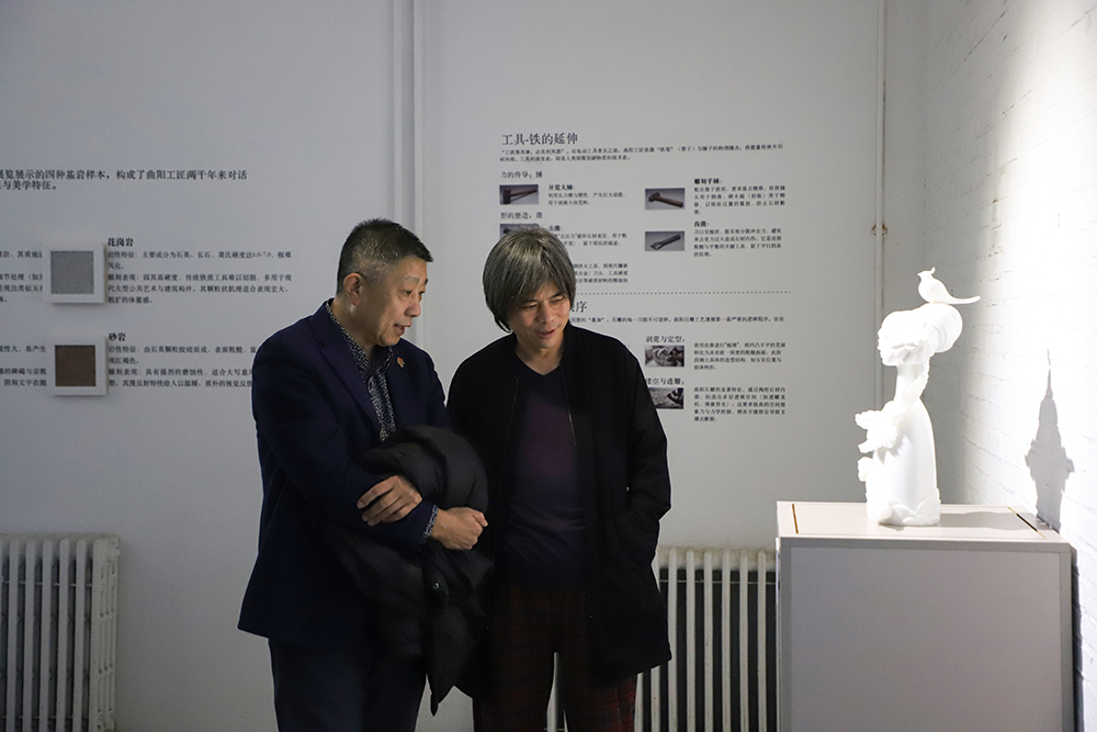 12月16日下午,“听石:在凿痕与光影之间——河北曲阳石雕艺术研究展”,在北京798艺术区萃岛画廊盛大启幕。展览由河北工艺美术职业学院主办,曲阳县人民政府和河北省当代雕塑院协办,我校校长张广军担任策展人。