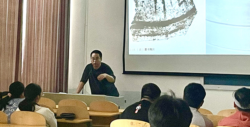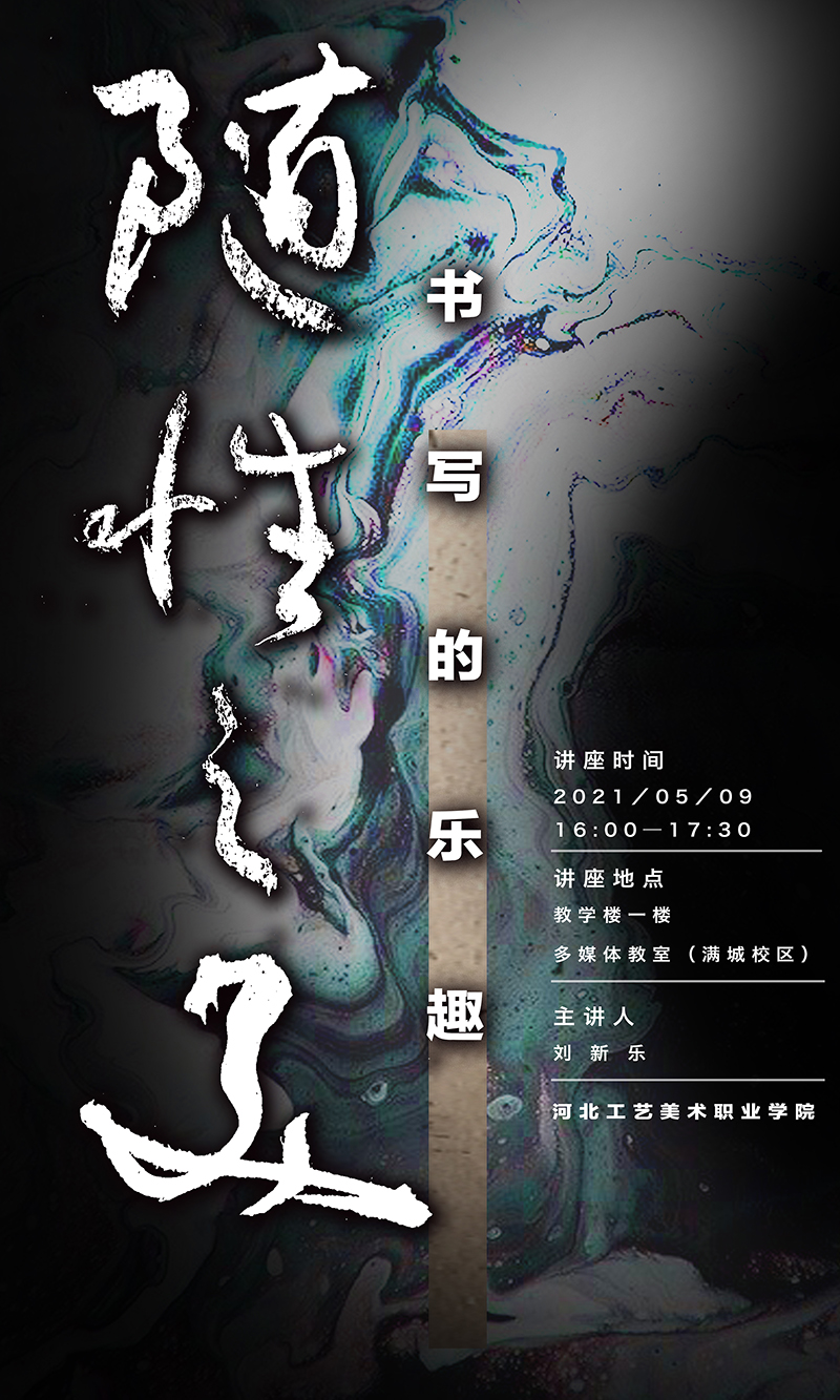 刘新乐老师在讲座中对书法的书写性和艺术设计的关联性进行了讲解,鼓励学生从书法中汲取营养,善于观察、体验生活,并和自己的专业进行紧密联系。