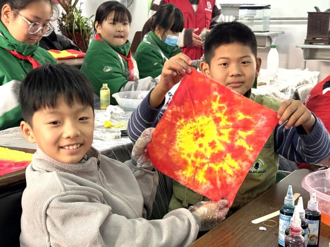 本次活动由支部教师张雅迪、张彭云、杨彤旭带领学生志愿者共同组织,面向实验小学五年级学生,通过讲解、示范与实践相结合的方式,带领孩子们领略扎染技艺的千年魅力,体验手工创作的乐趣。