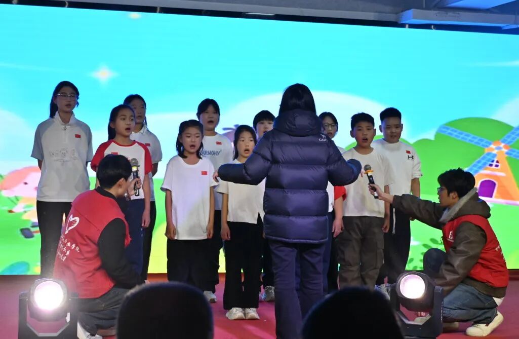 三位来自支教小学的孩子——四年级的林宇扬、一年级的张雨果和大班的小朋友王安然,与两位大学生主持人共同站在舞台中央。他们手握话筒,目光清澈,用还带着稚气却清晰响亮的声音向全场问好。这一刻,舞台的意义超越了表演,成为教育成果最直观的展示。