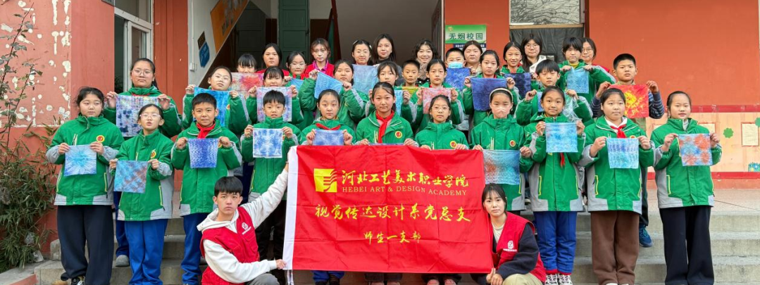 ▲非遗扎染进校园,美育浸润童心|视觉传达设计系党总支师生一支部走进保定实验小学天威校区开展美育公益课活动
