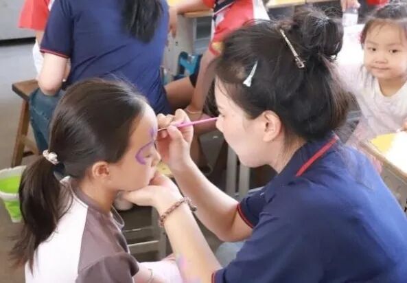 实践小分队走进孟家庄小学开展“美育润童心”主题支教活动,将非遗传承与创意美育有机融合。团队精心设计了系列艺术课程:剪纸课上,孩子们巧手剪出五角星和窗花;创意手工环节,扭扭棒变身红色灯笼和花朵;服装设计课上,色彩鲜明的汉服跃然人台;彩绘课堂中,专业学生指导完成童趣面绘;陶艺制作时,孩子们用陶土塑出心中的美好。通过多元美育活动,队员们以专业助力乡村教育,让艺术的种子在孩子们心中生根发芽。