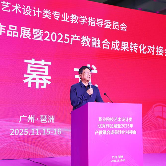 11月15日,我校校长、教育部职业院校艺术设计类专业教学指导委员会美术书画类专委会副主任、博士生导师张广军受邀出席在广州举办的全国职业院校艺术设计类优秀作品展暨2025年校企融合成果转化对接会,致开幕词,并主持开幕式。张广军表示,当前职业教育正处在加速变革的关键期,行业、院校与产业的联系不断深化,创新驱动和数字变革正在重塑职业教育模式与发展格局。此次活动为汇聚行业智慧、凝聚发展共识、推动艺术设计职业教育